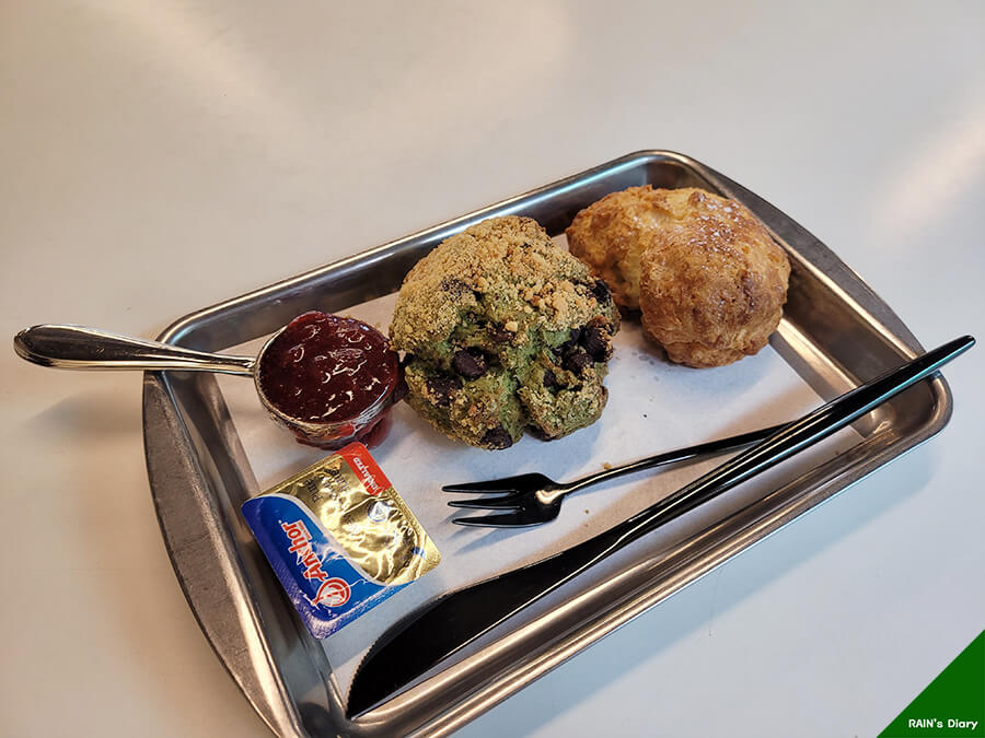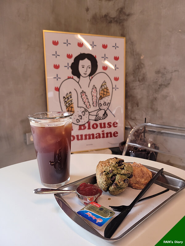 평소에 기본 스콘만 먹다 보니 초코칩이 콕콕 박혀있는 말차스콘이라 어떨지 궁금하더라고요.